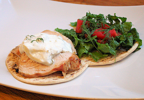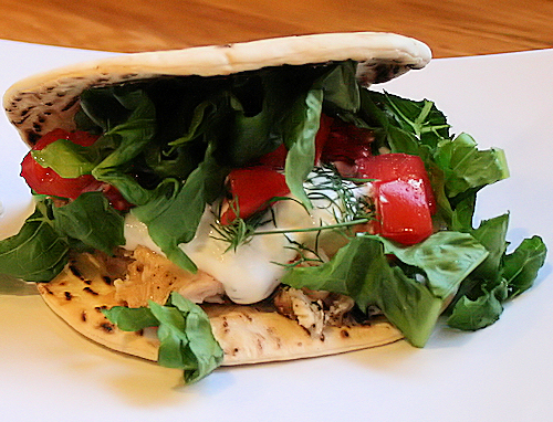 chicken gyro, chicken sandwich, flat-out, flatout, greek sandwich, greek sauce, greek yogurt sauce, grilled chicken, grilled gyro. low calorie sandwich, gyro, lemon dill, low card gyro, tzatziki sauce