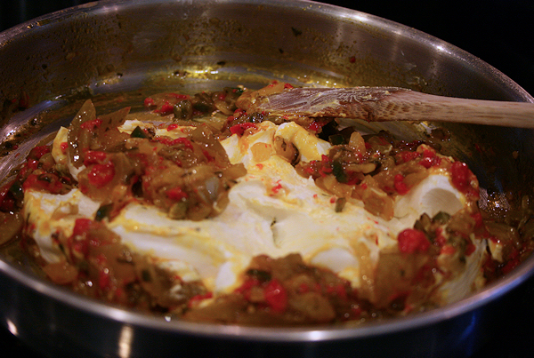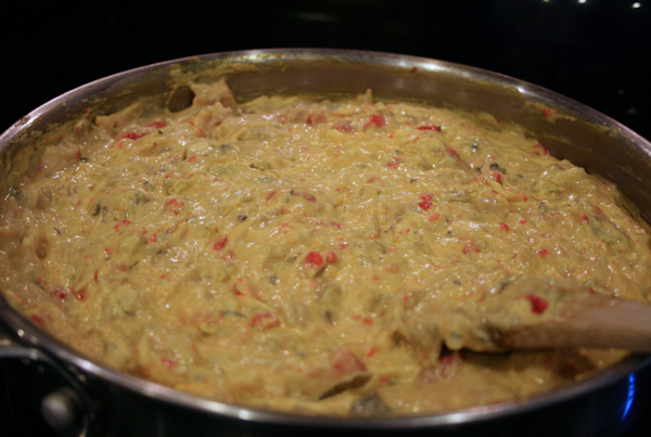 Add in your cream cheese, sour cream and salsa and let it all melt together.