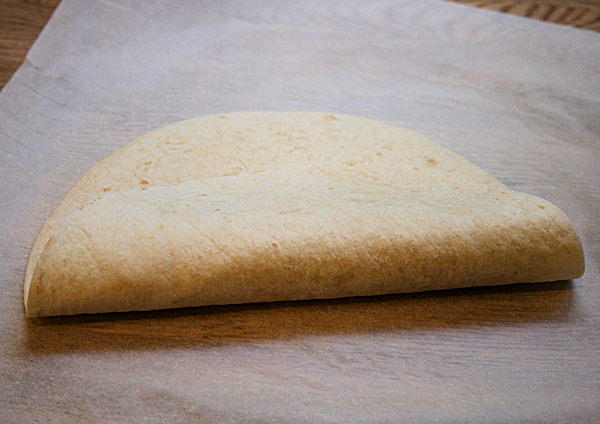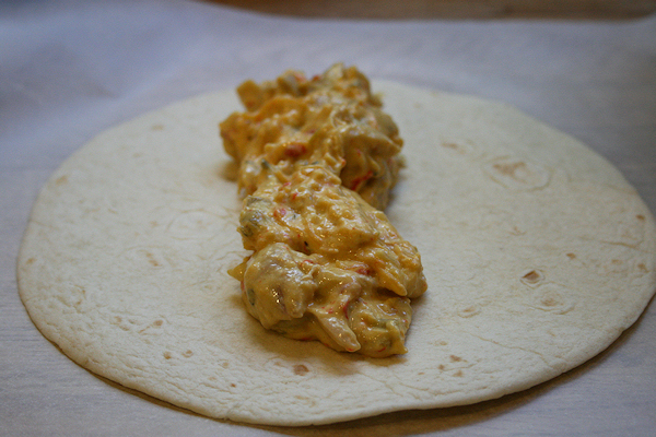 Lay your tortilla out and put about 2 tablespoons onto it.