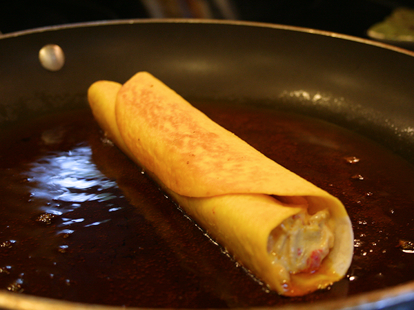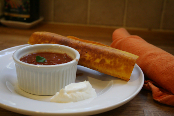 Oh Taquitos, I love them. Well, to be honest, I love anything creamy(as you know) with the word cheese in it. Fry them and they become just irresistible. BUT!! This time I decided to try Organic Red Palm Oil. It was sent to me by Nutiva. I was anxious to try it and even though it did not mention to use it for frying, I thought why not! It has a wonderful buttery flavor combined with high levels of antioxidant vitamins A and E and let’s face it; when your making something this decadent, you can use all the help you can get! I loved how this came up the rich red color. This oil kept it nice and crisp and the filling melted perfectly. A little sour cram and salsa on the side and your taquito is complete.
