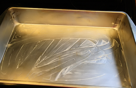 Lastly, add the chocolate chips and 1 cup of the pretzel pieces and stir just until blended. You will need a 9×13 pan. I greased mine with coconut oil but you can use whatever you have on hand such as butter or Crisco.