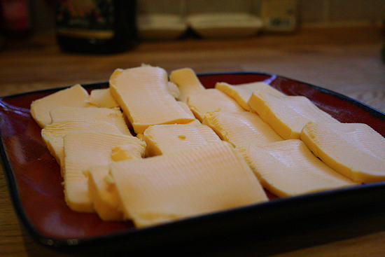 While the meatloaf is cooking, slice the Velveeta cheese. I use the block because I like the texture so much better. Now I know a lot of people do not like processed cheese so in this instance I would go for a creamy cheese like maybe Brie that would be divine with the mushrooms. I was overruled. SO back to slicing the cheese.