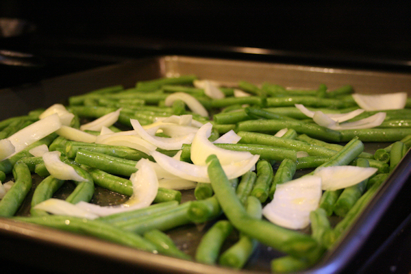 I served mine with some simple fresh green beans roasted in the oven at the same time tossed with some olive oil, garlic and onion.