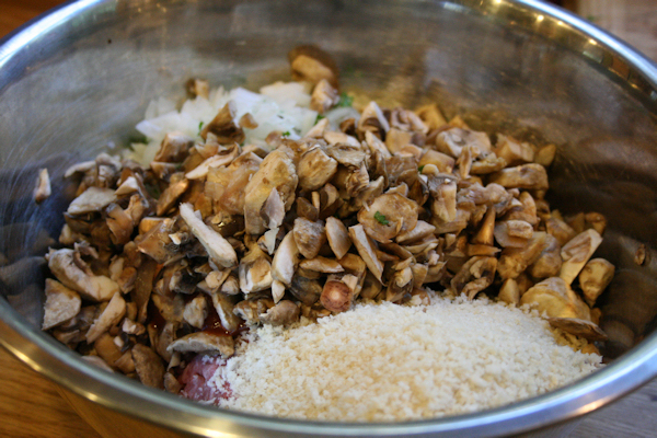 Stir all of the ingredients together. Do not over mix as this will make for a dry meatloaf. Mix just so that all the ingredients are incorporated well.