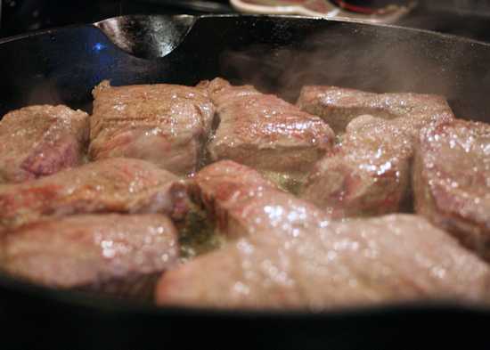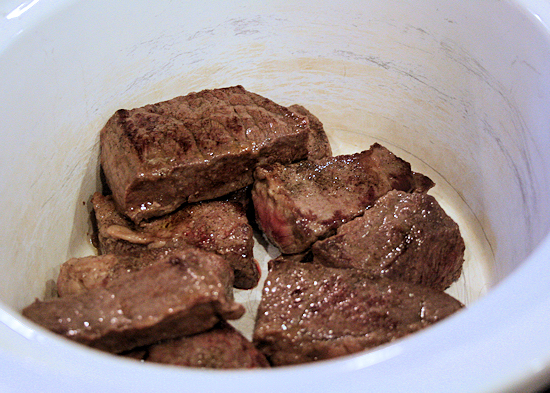 Drop the ribs into the pan and brown on all sides. When each of your ribs are nice and brown, take them out and place into the bottom of your crock pot. I did this in about three batches to make sure the ribs had enough time to brown evenly.