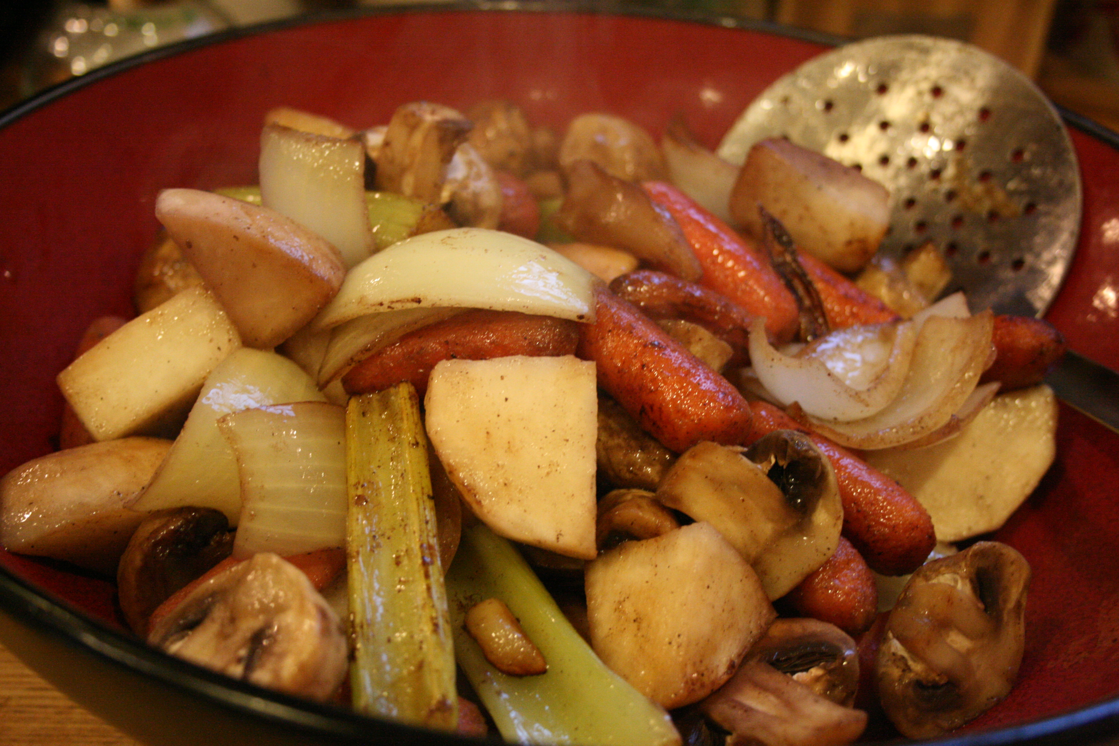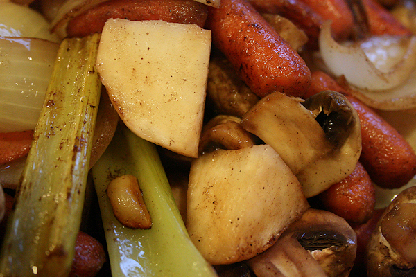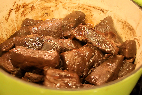 See how they are just falling apart in the pan? I like to leave a little juice at the bottom to spoon over the potatoes or polenta, which I particularly love. By leaving this little bit of heaven in the bottom, you will also prevent burning the meat. When it has reduced a bit, you can add back in the vegetables to coat them in the glaze. This takes about 30 to 45 minutes and you are done!