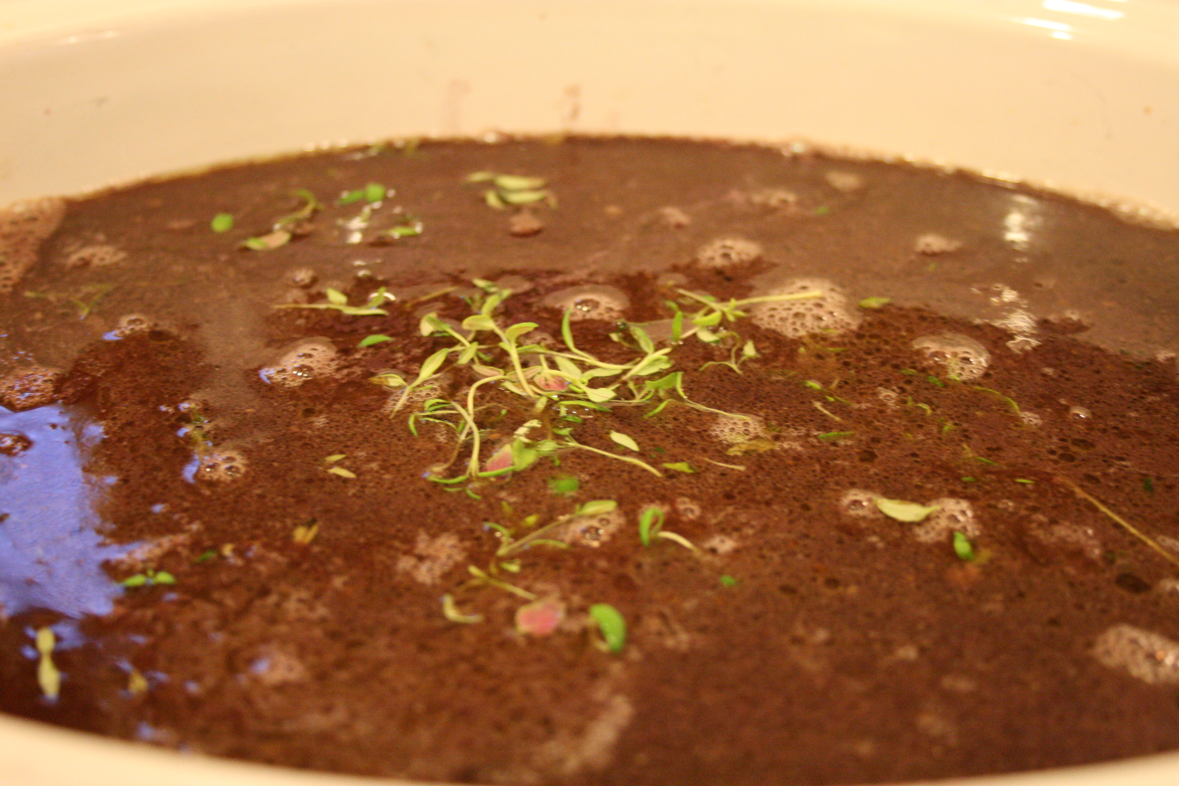The next day when you check on your beautiful project, remove from refrigerator and take the excess fat off the top that has solidified. Throw away in the trash (NOT INTO YOUR SINK! Trust me on this. I have been yelled at by the hubby for this transgression) Remove the veggies and set them aside once again.