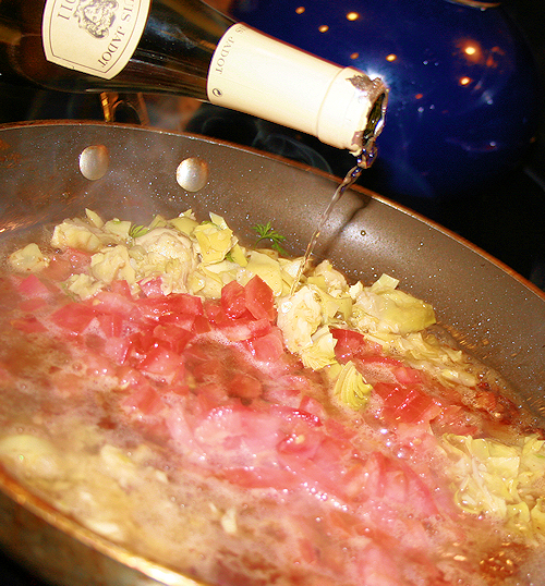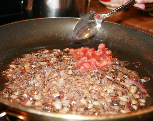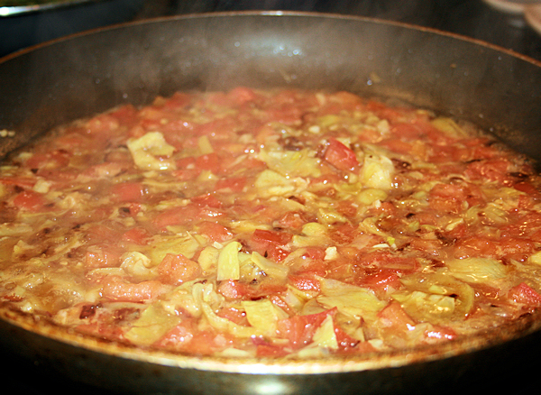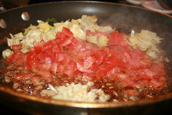 Add the diced tomato and artichoke and stir well, letting the flavors simmer together for about 2minutes.