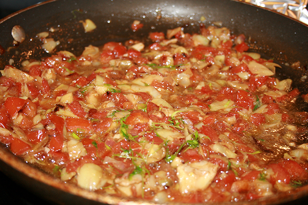 Simmer until liquid is reduced by at least half, leaving you with a nice rich sauce.