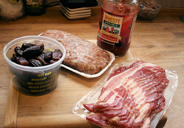 For this recipe I chose breakfast sausage because I love the sage and spices that this sausage has, and I wanted every flavor element to come through from dates to bacon to sauce. Sometimes when I use Italian sausage those spices can over power, but you can use your preference if Italian sausage is your favorite.