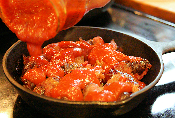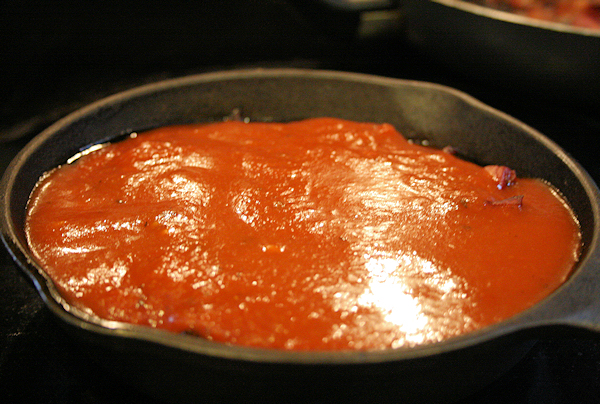 When you are satisfied with the color on your bacon, pour about 1-2 cups of sauce over the dates until covered.