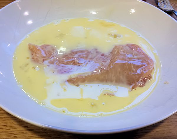 Dip your chicken into the egg mixture and then into the panko being sure to evenly coat both sides.