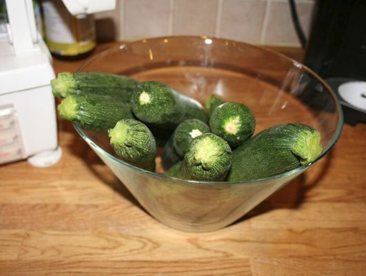 Fresh from the garden… well, someone’s garden. Hey, don’t judge me. At least I bought local! I am however, trying to cultivate my own garden this year amd I will let you know how it goes! So I started out with 8 because I had only three to feed. It’s about 3-4 zucchinis per person.