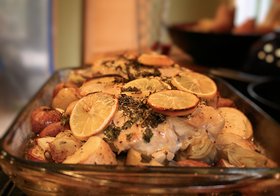 Lemon Garlic Herb Chicken, Potato & Green Bean Bake