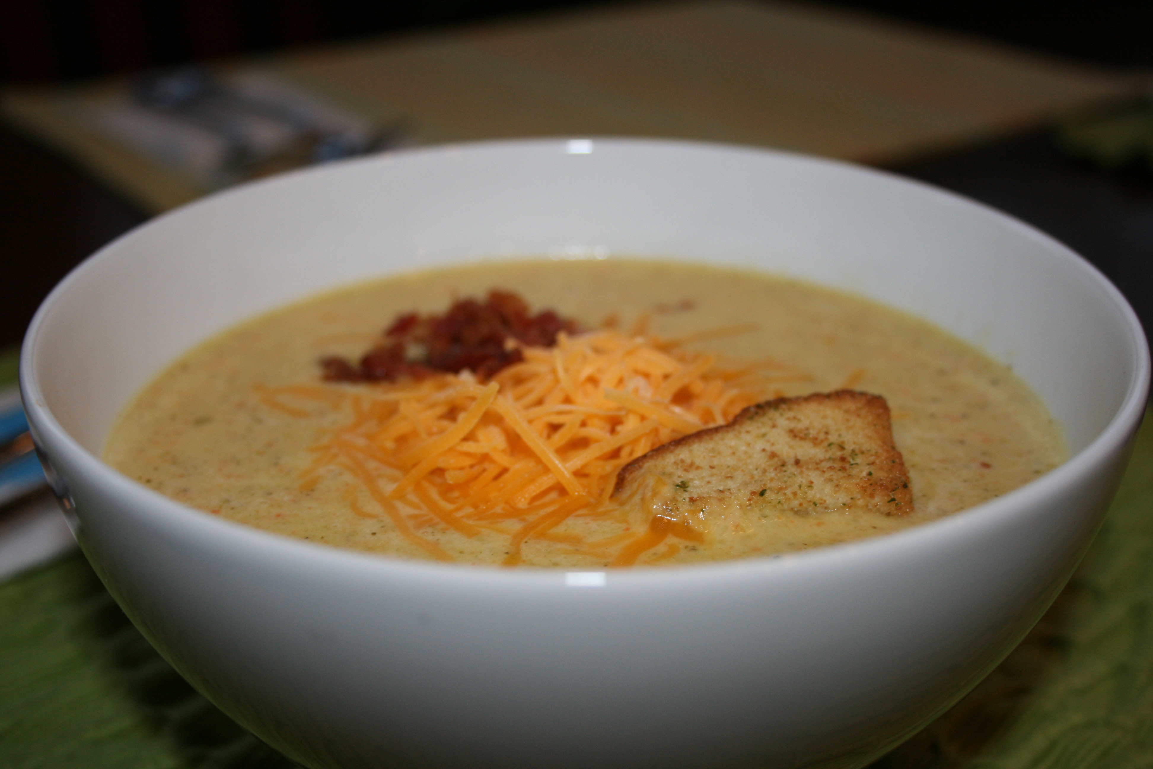 I love soups during the winter. They are quick, easy and you can literally make anything to go along with it. Your favorite indulgence is ok as long as you have soup with it! Well that is what I tell myself and please don’t tell me any different as tonight I am making cheesy stuffed jalapenos pepper poppers. The creaminess of this soup and it’s easiness to make keeps me coming back winter after winter. I make mine silky smooth with a few pieces of broccoli chunks and a hint of white wine. Topped with cheddar and a tiny bit of bacon, this soup hits everyone’s notes in this house.
