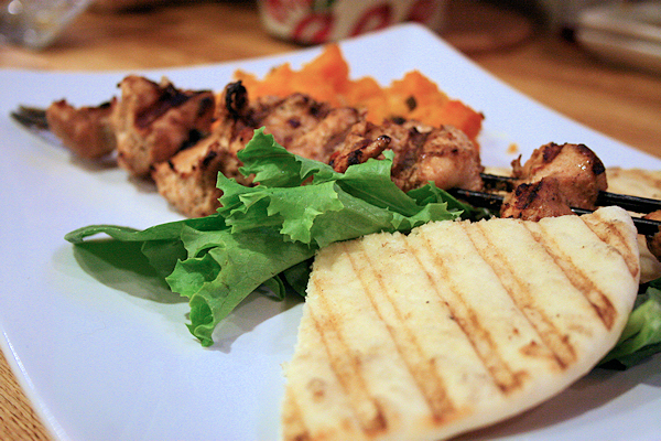 My mother loves Indian cooking, and tonight I thought I’d try my hand at this. Indian cooking is so savory and rich. I just love how all the spices come together and make your whole kitchen smell amazing. The chicken tastes just as divine as the aroma, trust me! The overnight yogurt marinade makes the chicken so tender. Now most recipes use the legs and thighs but i used chicken breasts because I wanted to lighten this up and use skewers. We loved it! The recipe has been adapted from Simply Recipes. Here is my try at Tandoori chicken.